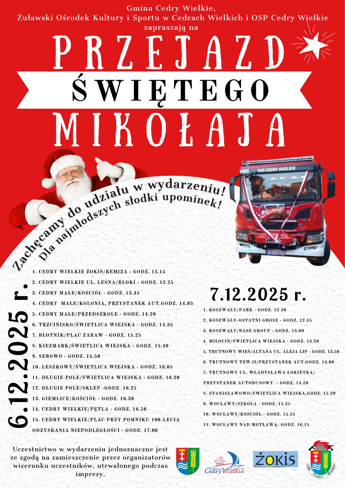 Gmina Cedry Wielkie, Żuławski Ośrodek Kultury i Sportu oraz OSP Cedry Wielkie serdecznie zapraszają na PRZEJAZD ŚWIĘTEGO MIKOŁAJA!